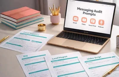 Inside, you’ll get a guided messaging scorecard and two AI messaging audit prompts that help you pinpoint what’s working, what’s not, and what to refine right now for stronger, more compelling messaging.